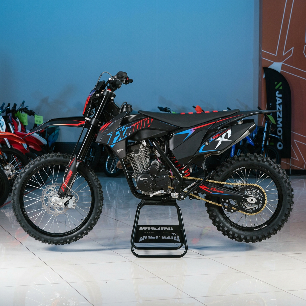 FX MOTO X1 YB300R — это универсальный эндуро мотоцикл для тех, кто ищет надёжную и понятную технику для бездорожья. Он сочетает простую конструкцию двигателя, регулируемую подвеску и уверенную тягу, обеспечивая комфортный контроль на трассе и хорошую приспособленность к активной эксплуатации.